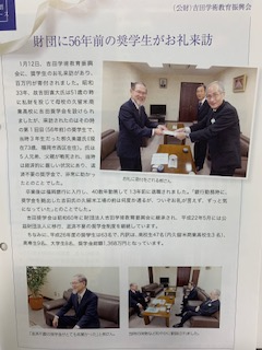 この奨学会は、各クラス1名、計21名に今の時価にして3万円の奨学金を給付し、昭和60年に財団法人吉田学術教育振興会に移行するまで継続されました。